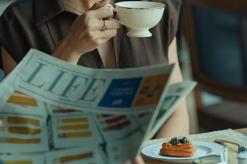 ゆったりとしたスペースに座り心地の良いソファが置かれ、ユニークなL字型の窓際には