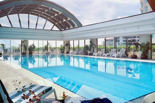 ハノイで唯一の開閉式の屋根の室内プールは、