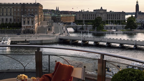 このホテルは、毎年訪れるノーベル賞授賞者、国賓クラスのゲストも宿泊されるスウェーデンで最も格式の高いホテルとなっています。客室からは、旧市街、ガムラ・スタンの街並み、オペラ座などが一望できます。街の中心にあるこのホテルは、どこに行くにも徒歩で行くことができ、非常に便利な場所に位置しています。客室内は、5つ星のホテルに相応しい、落ち着いた雰囲気にまとまっています。バスルームも広く、大きなバスタブでゆっくりアロマバスも楽しめます。アメニティは、イタリアのブランド、アクア・ディ・パルマ(Aqua Di Parme) のものを使っています。エレガンスの象徴ともいわれるフレグランスは、これまでも多くの有名人にも愛用されてきました。1Fにあるレストラン、Verandanでは素晴らしい景色を堪能しながら、美味しい朝食が楽しめます。さらにこのレストランは、スモールガスボード(北欧のバイキング料理)、シーフードビュッフェ、クリスマスディナーなどのテーマメニューなども季節ごとに提供しています。最高のお料理と雰囲気を味わうことができるレストランとしてお勧めです。さらにホテル内には、ミッシェリンクラス2つ星のレストラン、Matt