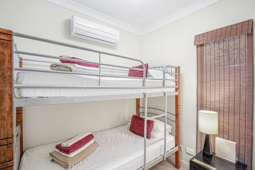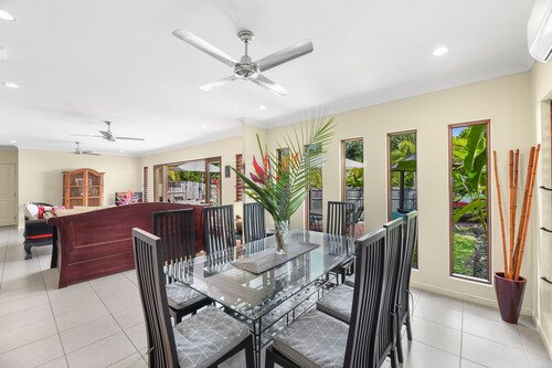 ビーチに位置する、パーム コーブのこのバケーションホームは、ビエスパパームコーブ、パーム コーブ ビーチ、クイーンズランドの湿った熱帯から 2 km 圏内です。マカリスター山脈国立公園およびクリフトン ビレッジ ショッピング センターも 3 km 圏内です。 屋外プールのほか、この禁煙のバケーションホームにはランドリー設備および庭園があります。 共用エリアでの WiFi (無料)および セルフパーキング (無料)もご利用いただけます。その他の設備にはバーベキューグリルがあります。 バケーションホームには、ベッドルーム 4 室、WiFi (無料)、DVD プレーヤーが備わっています。プライベートプールをご利用いただけるほか、冷蔵庫とオーブン付きのキッチンも備わっています。客室清掃は行われません。
