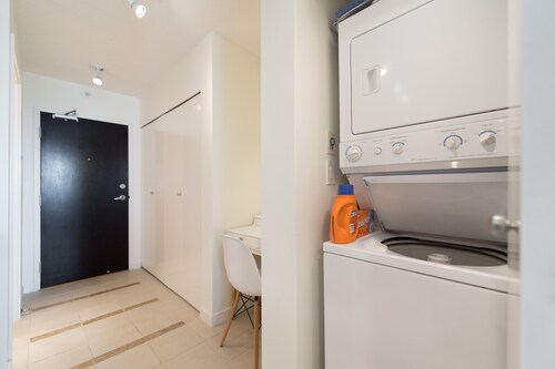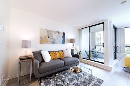 ダウンタウン バンクーバーに位置するこのコンドミニアムは、ロブソン スクエア、グランビル ストリート、ロブソン通りから徒歩 5 分圏内です。バンクーバー ウォーターフロントおよびカナダ プレースも 15 分圏内です。 地下鉄バンクーバーシティセンター駅まで徒歩 7 分、地下鉄バラード駅まで徒歩 8 分です。 この禁煙のコンドミニアムには、フィットネスセンター、ランドリー設備、および庭園があります。 コンドミニアムでは、冷蔵庫とオーブン、コンロ、電子レンジが備わったキッチンをご利用いただけます。便利な洗濯機、コーヒー / ティー メーカーのほか、バルコニー、スマートテレビもご利用いただけます。