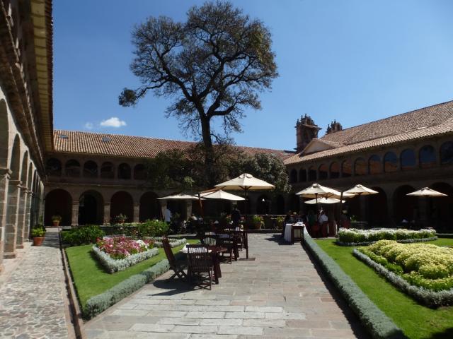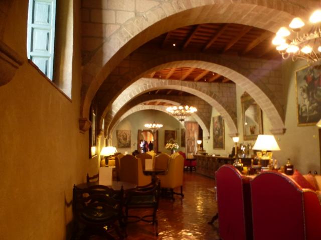 ホテルを一歩入ると重厚な落ち着いた雰囲気のロビーとアパティオ(中庭)が目に入ってきます。16世紀のスペイン植民地時代に建てられた神学校建築を改修して建てられたホテルで、建物自体がペルー共和国の文化財に指定されています。とにかくフォトジェニックなホテル。アルマス広場に近く、レストランやバーも近くに多いですが、ぜひホテルの雰囲気を味わうために植民地時代のパティオに面したレストランで一食をとりましょう。天気が許せばパティオで昼食をとることをお勧めします。他のホテルに泊まりながら、ここのレストランに食事に来たり、バーに飲みに来る人も結構います。全室エアコン、暖房付きですが、バスタブは必ずしも全てになく、どうしても必要な場合は、予約時にその旨をつげ、さらにチェックイン時に確認する必要があります。恒例のコカ茶サービスは、早朝から午後まではコカ茶、夕刻から夜は鎮静効果のムーニャ茶となっている行き届いたサービスだと思います。チェックインが午後3時と遅いため、午前到着で午後のツアーに入る場合にはツアー会社とホテルにアーリーチェックインが無料でできるか可能が確認しておきましょう。部屋だけでなく、パティオを散策し、バーでもいっ