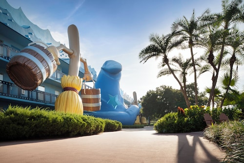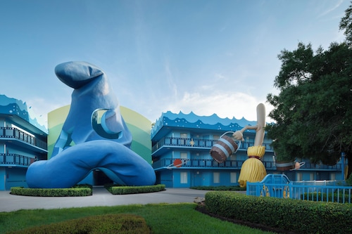 デラックス/モデレート/バリューの3段階からなる直営ホテルのうち、リーズナブルに泊まれるバリュークラスのディズニー・オールスター・リゾートには、ムービー、スポーツ、ミュージックの3つのリゾートがあり、各々テーマに沿った建物のデザインやインテリア、オブジェなどが楽しめます。中でも人気No.1のホテルがオールスター・ムービーリゾート!ディズニー名作映画『トイ・ストーリー』『ファンタジア』『ラブ・バッグ』『101匹わんちゃん』『飛べないアヒル』をテーマにした5つの棟があり、それぞれの世界観が楽しめます。