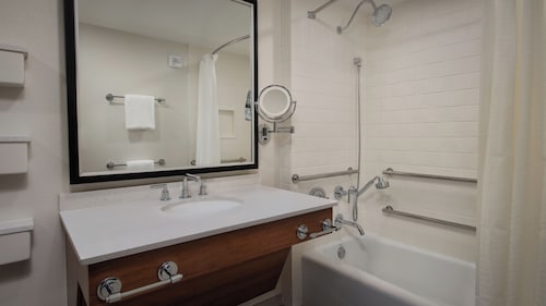 スタンダードルームのお部屋はダブルベッドが2台、最大4名まで宿泊可能です。テーブル1台とイス2脚があり、十分の広さがあります。ポスターと壁紙には各棟毎のキャラクターがいて、お部屋の中もディズニー感が楽しめます!洗面台とバスルームは別になっていて、バスタブも大人がゆったり入れるサイズです。