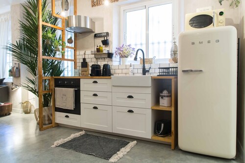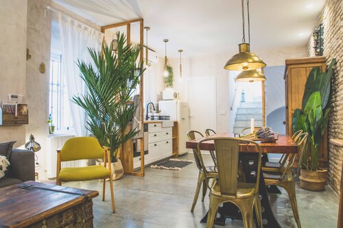トリアナに位置するこのバケーションホームは、カサ ラ テアトロ カルチュラル スペースおよびアルマス広場ショッピングセンターから徒歩 10 分圏内です。セビリア大聖堂およびメトロポール パラソルも 2 km 圏内です。プラサ・デ・クーバ駅まで徒歩 17 分、プラサ・ヌエバ・トラム停留所まで徒歩 19 分です。 ルーフトップテラスおよびランドリー設備がある禁煙のバケーションホームです。 バケーションホームでは、冷蔵庫とオーブン、コンロ、電子レンジが備わったキッチンをご利用いただけます。便利な2 室のバスルーム、洗濯機のほか、バルコニー、スマートテレビもご利用いただけます。客室清掃はリクエストにより行われます。