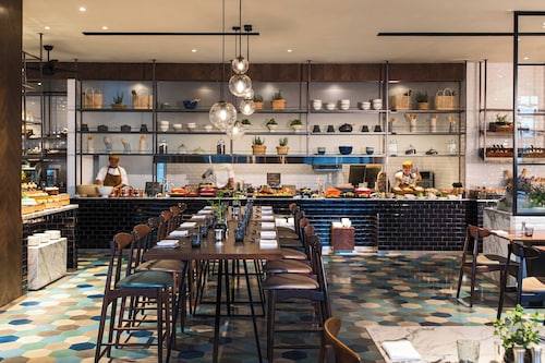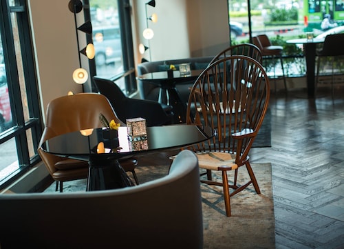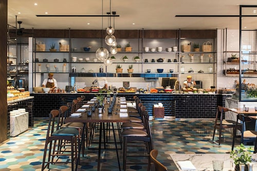 開放的なロビー&レセプション、中央の中庭、屋上のプール、フィットネスなども入っています。