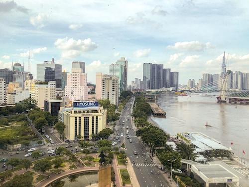 ホーチミンに点在するファイブスターホテルでは、トップクラスのおもてなしとサービスを受けられます。屋上にプールがあるのは実はホーチミンではここリバーサイドだけというのも特徴です。屋上からパノラマで見渡せるサイゴン川とホーチミンの景色は美観。異国情緒香る旅行に一役買ってくれること間違いありません。自信を持っておすすめできるホテルです。立地としては、ドンコイ通りからサイゴン川に外れたところなので、逆方向のベンタイン市場やバックパッカー街までは歩くのはちょっとしんどいですね。ただし、ドンコイ通りまでは徒歩3分圏内ですし、周辺にはレストランやエステも点在しています。何よりもサイゴン川が目の前にあるというのが非常にポイントが高いですね。おそらく5つ星でサイゴン川周辺のホテルは、ここリバーサイドとマジェスティック、レジェンドの三つのみです。客室を見てますと、窓から差し込む遮光はほどよく寝室を照らし、窓越しにはサイゴン川が映ります。ボートや客船が行き交う光景や夜の夜景も素敵でロマンティックな時間を過ごすことができます。バスルームは浴槽、トイレが清潔なのはもちろんのこと、アメニティも充実しています。ついつい持ち帰りたくなる