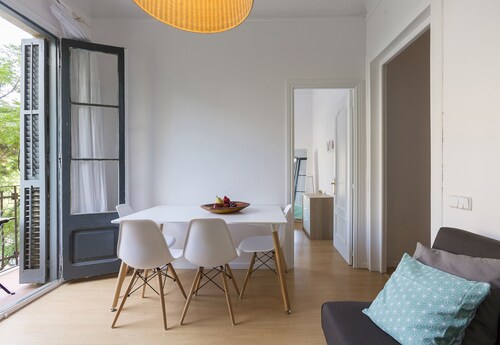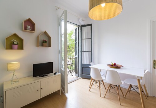 エイサンプルに位置するこのアパートメントは、アヴィングダ・ディアゴナル、サグラダ ファミリア (教会)、カサ・ミラから 2 km 圏内です。グラシア通りおよびカサ バトリョ(ガウディの建築)も 2 km 圏内です。地下鉄 ベルダグエル駅まで徒歩わずか 5 分、地下鉄 サグラダ ファミリア駅まで徒歩 6 分です。 この禁煙のアパートメントには、ランドリー設備があります。 アパートメントでは洗濯機のほか、冷蔵庫とオーブン、電子レンジが備わったキッチンをご利用いただけます。便利な1.5 室のバスルーム、ダイニング スペースのほか、バルコニー、テレビもご利用いただけます。