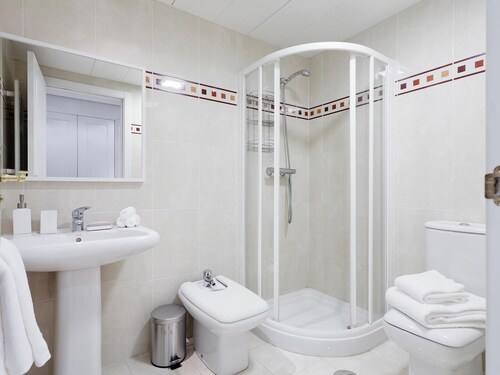 サラマンカ - セラーノに位置するこのアパートメントは、アルカラ通りおよびウィシンク センターから徒歩 10 分圏内です。カステリャーナ通りおよびアルカラ門も 2 km 圏内です。地下鉄リスタ駅と地下鉄ゴヤ駅が徒歩 5 分圏内にあります。 この禁煙のアパートメントには、コンシェルジュ サービスおよびランドリー設備があります。 アパートメントでは、冷蔵庫とオーブン、コンロ、電子レンジが備わったキッチンをご利用いただけます。便利な2 室のバスルーム、洗濯機のほか、WiFi (無料)、ダイニング スペースもご利用いただけます。客室清掃はリクエストにより行われます。