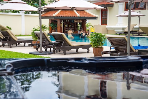 【Wi-Fi全館無料】 アンコールワットへと続く道沿いにあり、観光には絶好のロケーション。また徒歩圏内にはアンコールクッキーで有名なマダムサチコの店もあります。お部屋は35㎡とゆとりあるサイズ。バスタブとシャワーブースが分かれているなどの設備もうれしい。大きなアウトドアプールにはバーも隣接しており、シェムリアップのホテルには珍しいホットジャグジーもあるなど施設も充実しています。