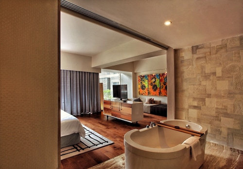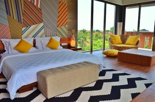 【Wi-Fi全館無料】 空港から車で35分、スミニャックエリアにあります。レギャン通りまで徒歩3分と便利な場所にあり、周辺にはレストランやカフェ、ショップなどが沢山あります。50mもあるルーフトッププールとプールバー、150以上のローカルブランドがある1,5000㎡のストアー、スポーツジムやアクテイビティセンターなど、ホテルライフを充実させる施設が併設されています。 ※ニュピ(2026/3/19)はチェックイン及びチェックアウトができません。