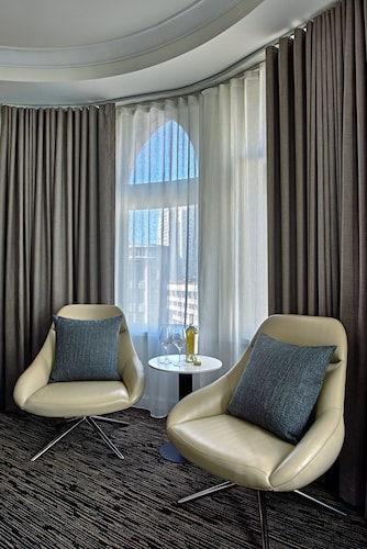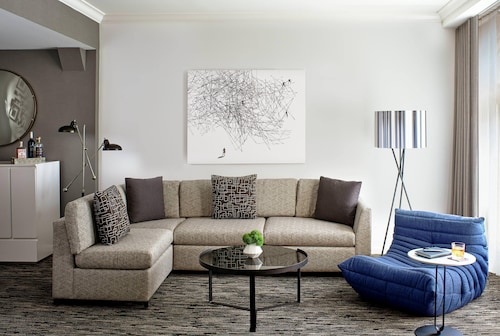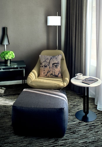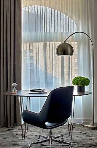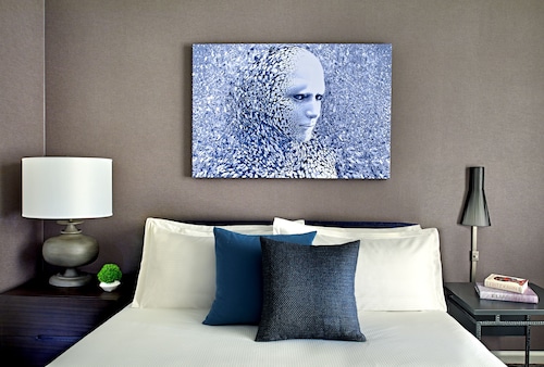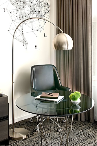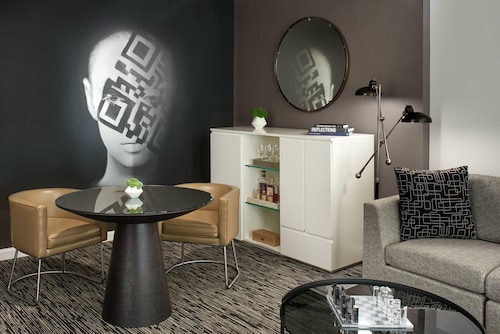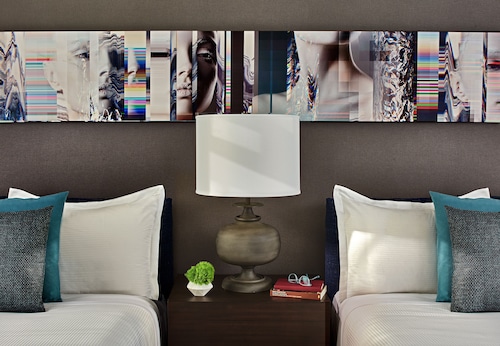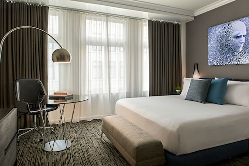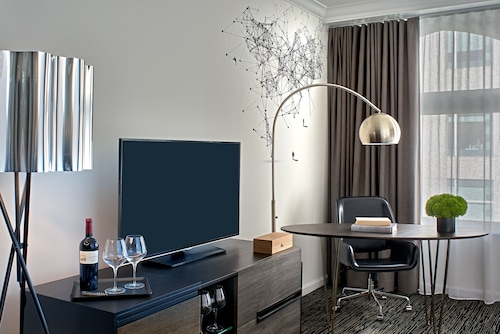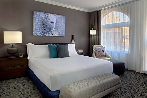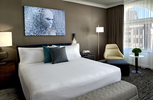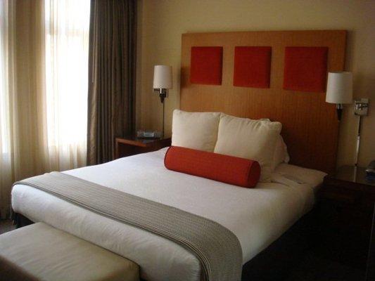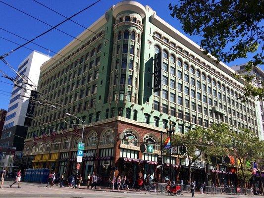 マーケットストリートと4thの角に位置するこのホテルは、1階にオールドネービーが入っている建物の5階から9階が客室になっていて、客室は全部で196室という小さめのホテルです。他のダウンタウンにある大型ホテルに比べ客室は少しゆとりがあり、リピーターが多い事からわかるように快適な滞在が約束されます。ホテル入り口は、4th側で、フロントロビーは入ってすぐ右側ににあります。コンベンションセンターに近く ビジネスのお客様にも人気が高いです。夕方(5時から6時)はワイン、朝はコーヒーが、ロビーで無料提供されています。アメニティはエトロで高級感があります。