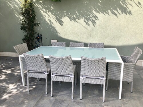 オルタレサに位置するこのバケーションホームは、アスカ金融地区から 2.2 km、ベルナベウ・スタジアムから 3.9 km です。カステリャーナ通りおよびプエルタ デ エウローパも 3 km 圏内です。地下鉄マノテラス駅まで徒歩 10 分、地下鉄オルタレサ駅まで徒歩 15 分です。 屋外プールのほか、この禁煙のバケーションホームにはランドリー設備およびバーベキューグリルがあります。 バケーションホームでは、プライベートプールのほかに、キッチン、洗濯機もご利用いただけます。便利な2 室のバスルーム、ダイニング スペースのほか、冷蔵庫、テレビもご利用いただけます。