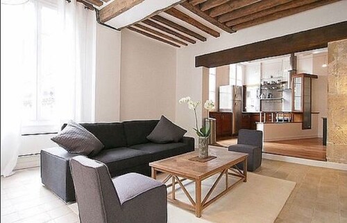 パリ シティ センターに位置するこのアパートメントは、リヴォリ通りおよびポンピドゥー センターから徒歩 5 分圏内です。ノートルダム大聖堂およびサンルイ島も 15 分圏内です。 地下鉄 オテル ド ヴィル駅と地下鉄 シャトレ駅が徒歩 5 分圏内にあります。 この禁煙のアパートメントには、ランドリー設備があります。 アパートメントでは、冷蔵庫とオーブン、コンロ、電子レンジが備わったキッチンをご利用いただけます。便利な洗濯機、ダイニング スペースのほか、コーヒー / ティー メーカー、薄型テレビもご利用いただけます。