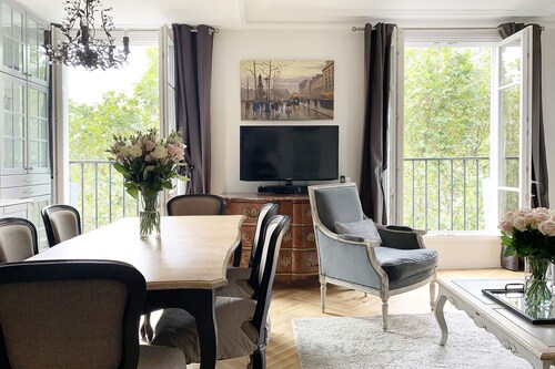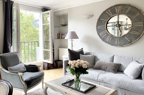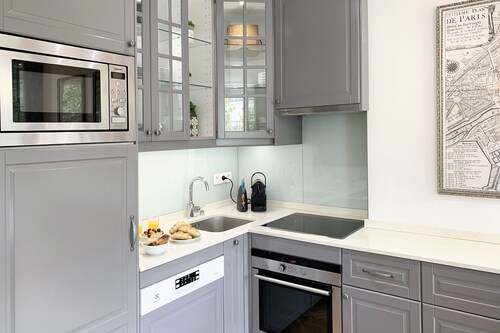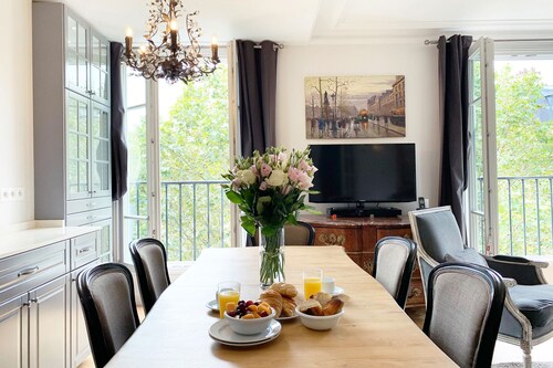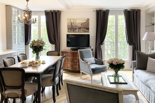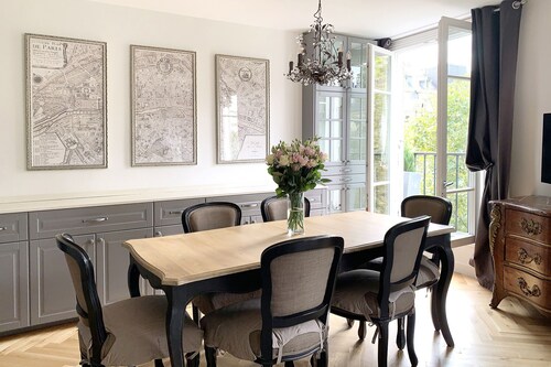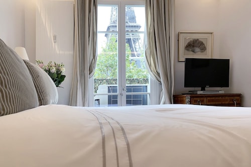 7 区に位置するこのアパートメントは、シャン ド マルス (公園)およびエッフェル塔から徒歩 5 分圏内です。クレ通りおよびトロカデロ広場も 15 分圏内です。 ポン デ ラルマ駅まで徒歩 8 分、地下鉄 アルマ マルソー駅まで徒歩 10 分です。 この禁煙のアパートメントには、ランドリー設備があります。 アパートメントには、ベッドルーム 3 室、WiFi (無料)、ソファー ベッドが備わっています。暖炉をご利用いただけるほか、冷蔵庫とオーブン付きのキッチンも備わっています。