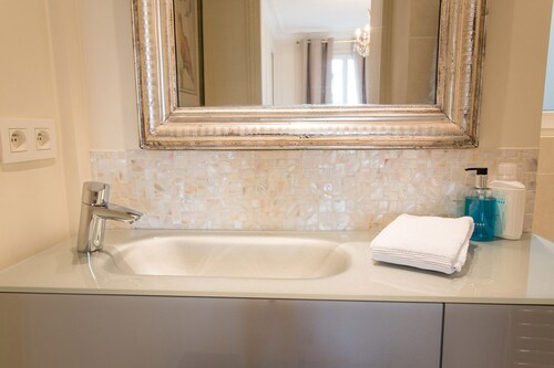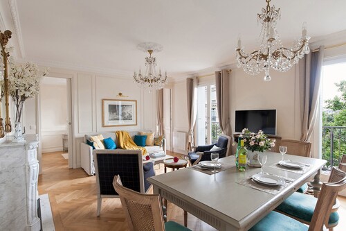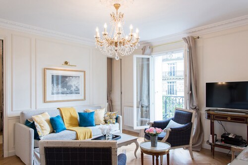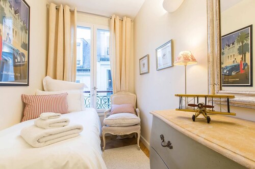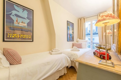 7 区に位置するこのアパートメントは、シャン ド マルス (公園)、エッフェル塔、クレ通りから徒歩 10 分圏内です。シャンゼリゼ通りおよびレ・アンヴァリッドも 2 km 圏内です。地下鉄 エコール ミリテール駅まで徒歩 7 分、ポン デ ラルマ駅まで徒歩 7 分です。 この禁煙のアパートメントには、ランドリー設備があります。 アパートメントには、ベッドルーム 2 室、WiFi (無料)、ソファー ベッドが備わっています。キッチンには、冷蔵庫、オーブン、コンロ、電子レンジが備わっています。