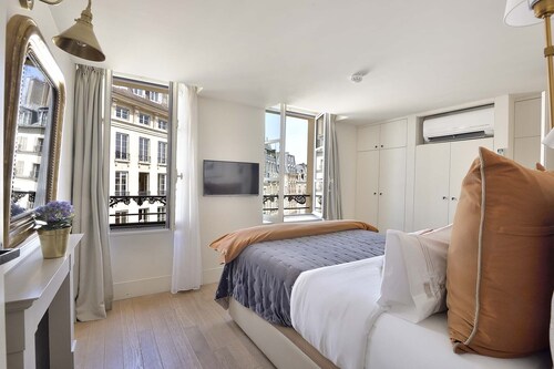 パリ シティ センターに位置するこのアパートメントは、イル ド ラ シテおよびリヴォリ通りから徒歩 5 分圏内です。ノートルダム大聖堂およびルーブル美術館も 10 分圏内です。地下鉄 ポン ヌフ駅まで徒歩わずか 3 分、サン ミッシェル ノートルダム駅まで徒歩 6 分です。 この禁煙のアパートメントには、ランドリー設備があります。 アパートメントでは、暖炉のほかに、WiFi (無料)、キッチンもご利用いただけます。便利な1.5 室のバスルーム、洗濯機のほか、バルコニー、テレビもご利用いただけます。