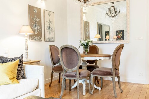 7 区に位置するこのアパートメントは、シャン ド マルス (公園)およびエッフェル塔から徒歩 5 分圏内です。クレ通りおよびトロカデロ広場も 15 分圏内です。 ポン デ ラルマ駅まで徒歩 8 分、地下鉄 アルマ マルソー駅まで徒歩 10 分です。 この禁煙のアパートメントには、ランドリー設備があります。 アパートメントでは、暖炉のほかに、WiFi (無料)、キッチンもご利用いただけます。便利な2 室のバスルーム、洗濯機のほか、バルコニー、ソファー ベッドもご利用いただけます。