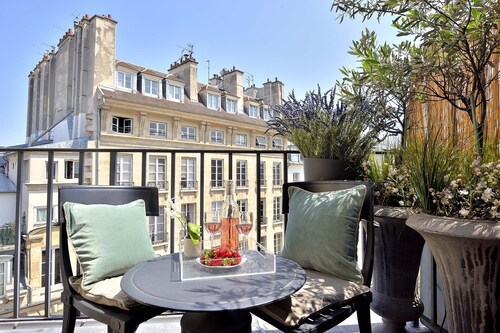 8. セール! パリの歴史的中心部にあるバルコニー付きのデラックスペントハウス、2名様に最適