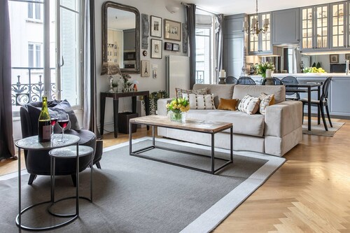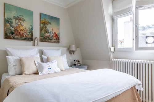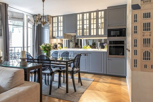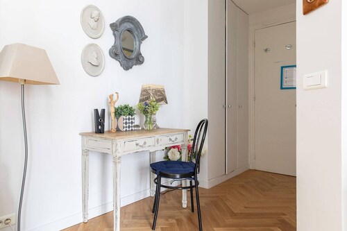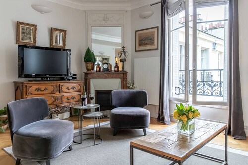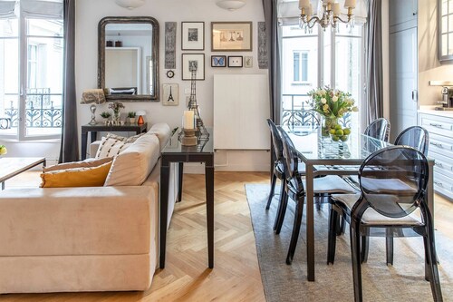7 区に位置するこのアパートメントは、シャン ド マルス (公園)およびエッフェル塔から徒歩 5 分圏内です。クレ通りおよびトロカデロ広場も 15 分圏内です。 ポン デ ラルマ駅まで徒歩 7 分、地下鉄 アルマ マルソー駅まで徒歩 9 分です。 この禁煙のアパートメントには、ランドリー設備があります。 アパートメントでは、暖炉のほかに、WiFi (無料)、キッチンもご利用いただけます。便利な2 室のバスルーム、洗濯機のほか、冷蔵庫、テレビもご利用いただけます。