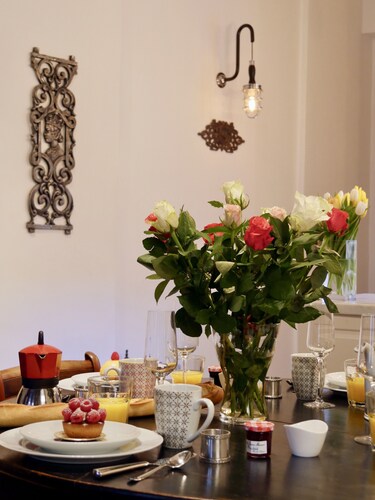 パリ シティ センターに位置するこのアパートメントは、グラン ブールヴァール、ポンピドゥー センター、プラス・ド・ラ・レピュブリックから徒歩 10 分圏内です。ノートルダム大聖堂およびルーブル美術館も 2 km 圏内です。地下鉄 アール エ メティエ駅と地下鉄 ランビュトー駅が徒歩 5 分圏内にあります。 この禁煙のアパートメントには、コンシェルジュ サービスおよびランドリー設備があります。 アパートメントには、ベッドルーム 2 室、WiFi (無料)、DVD プレーヤーが備わっています。暖炉をご利用いただけるほか、冷蔵庫とオーブン付きのキッチンも備わっています。客室清掃はリクエストにより行われます。
