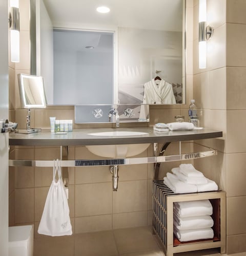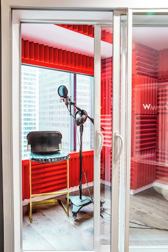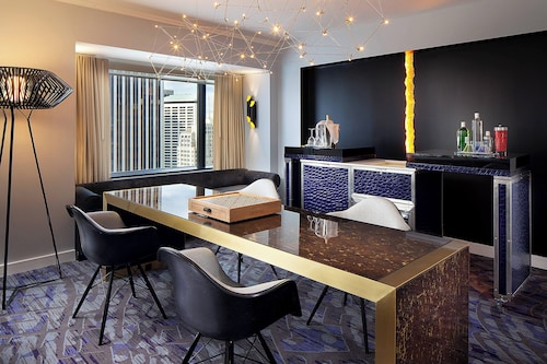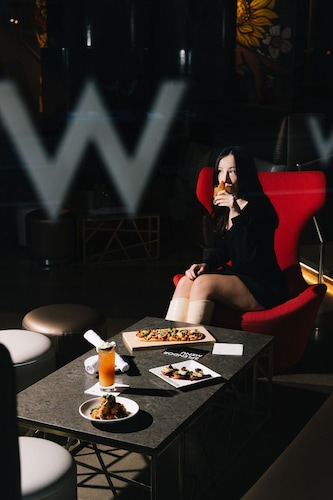 他の『ダブリュ』同様、ヒップでエッジがきいたインテリアですが、夕方になると照明がぐっと落とされてムーディーに。派手なロビーとは一転、客室はベージュや茶系でまとまったシックな造りになっているので落ち着けます。ゲストは朝、ロビーでスターバックスコーヒーが無料で飲めるのもポイントです。
