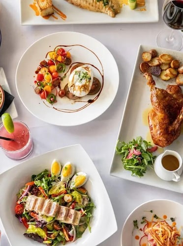 ホテル内のフレンチレストラン、Gaby’sも天井が高く、