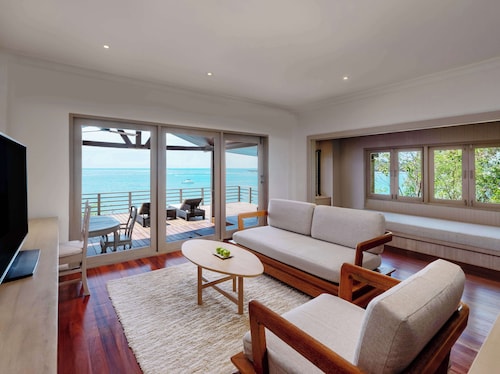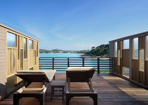 リゾートはプライベートビーチになり、出かける際は車が必要になります。到着前はここもあそこも行ってと考えていても、リゾートを見たとたんに、どこにも行かなくてもいいかもと思ってしまうかもしれません。景色や聞こえてくる音も含め、リゾート全体にリラックスした雰囲気があります。さらに静かな時間を得られるように、中腹にあるシービューの半月型のプールは大人限定です。