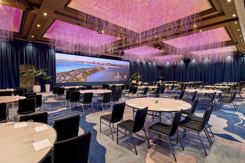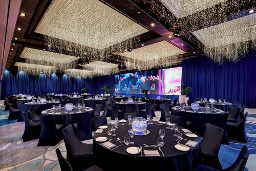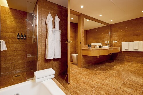 中央に大きな吹き抜けのある広々としたホテルです。さすが5スターホテルらしく、ホテル単体での建物です。玄関の前には車を停車するスペースがあって、チェックインの際に利用できます。ホテル中心街から少々離れてはいますが、歩けない距離ではありません。それに市街地を巡回している無料のシャトルバスも利用できます。すぐとなりが警察署ですので、気分的に安全ですが、何か事件があると夜中にサイレンが聞こえることがあります。桂という日本食のレストランがホテルの中にあり、本格的な日本料理が食べられます。毎週木曜日と金曜日のバイキングデナー(78ドル)と毎週金曜日のバイキングランチはとりわけ人気です。ただし、いつも満席なので事前の予約が必要です。一日当たり100MBまでWi-Fiが無料で使えます。$9.95 追加で無制限に使えます。このホテルは以前マイケル・ジャクソンが宿泊したホテルです。このホテルは、入り口とロビーが二ヶ所あり、ツアーなどの待ち合わせの際、各ツアー会社によって待ち合わせ場所が違いますので、注意しましょう。