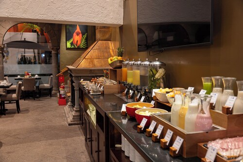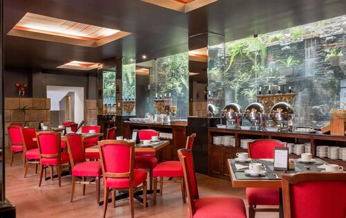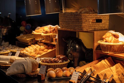 コンテンポラリー部分にはエレベーターが二基あり、レストランもコンテンポラリー部分にあります。ビュッフェの朝食が4時30分開始(午前10時まで)というのも朝早く出発する観光客にはうれしい。レストラン自体は一日中営業しており、裏のプラテーロス通にも入り口があるため、場合によっては裏口からホテルに戻ることも可能。