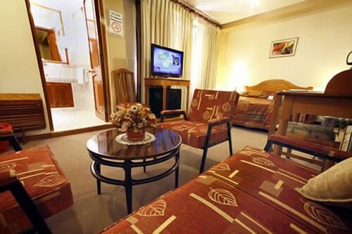 クスコ ヒストリック センターに位置するこのホテルは、現代美術館およびプラザ デ アルマスから徒歩 5 分圏内です。呪術 薬用植物博物館およびチョコミュージアムも 5 分圏内です。サン ペドロ駅まで徒歩 10 分、ワンチャック駅まで徒歩 17 分です。 レストラン、バー / ラウンジ、およびランドリー設備があるホテルです。朝食ビュッフェ (無料)および共用エリアでの WiFi (無料)もご利用いただけます。その他に、敷地内には24 時間対応フロントデスク、ツアー / チケット案内、およびポーター / ベルボーイ サービスがあります。 全 31 室の客室には快適なピロートップベッドおよび羽毛の掛け布団のほかに、便利なダイニングスペースと簡易キッチンが備わっています。 WiFi (無料)およびルームサービスのほかに、液晶テレビ (ケーブル放送付き) が標準設備として備わっています。
