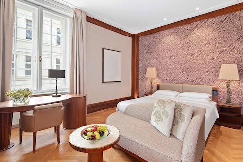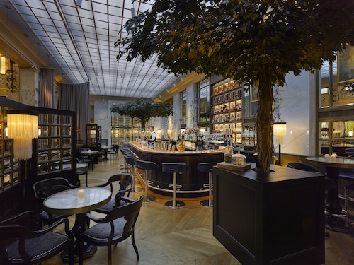 ホテルのロビーは開放的でとても豪華。とても高い天井、そしてオープンキッチンのレストランは宿泊客でなくても利用出来ます。ホテル内にはカフェやレストランもあり。近年、歩行者専用道路となったBognergasseに夏季はテラスが設置されゆったりとお食事やティータイムを楽しむ事が出来ます。重厚なインテリアのゆったり出来るシガーバーもあり。