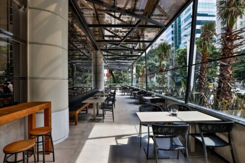 パウリスタ大通りの南側に位置し、周辺にビジネスマン相手の飲食店が多い場所にある利便性に富んだホテルです。