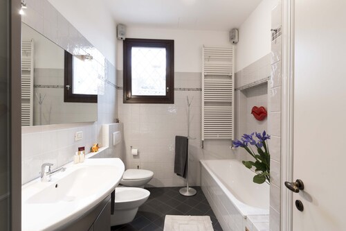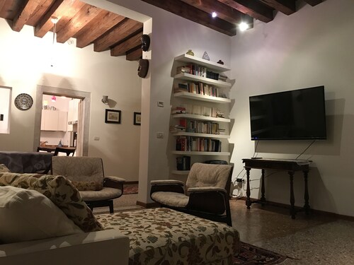 サンタ クローチェに位置するこのアパートメントは、ベネチアのカジノ、ローマ広場、カナル グランデから徒歩 15 分圏内です。サン マルコ広場およびリアルト橋も 2 km 圏内です。ベニス サンタルチア駅まで徒歩 8 分、ヴェネツィア (XVQ - サンタ ルチーア駅)まで徒歩 8 分です。 この禁煙のアパートメントには、ランドリー設備があります。 アパートメントでは、冷蔵庫とオーブン、コンロ、電子レンジが備わったキッチンをご利用いただけます。便利な2 室のバスルーム、洗濯機のほか、WiFi (無料)、テレビもご利用いただけます。