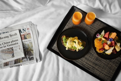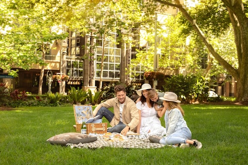 5星の当ホテルはハイドパークに面していて、その向こうにはセントメアリーズ教会がありシドニーの喧騒を忘れて優雅な趣に浸れますが、お買い物にグルメに大変便利な立地です。ウェストフィールドSC、ピットストリートモール、QVBは、徒歩5分以内。すぐ横のデビットジョーンズ・デパートのショーウィンドウは毎年12月になるとクリスマス・デコレーションが人気でオーストラリア中の女の子の憧れです。ホテル南側は少し歩けばサリーヒルズやチャイナタウン。話題のカフェやレストランが集まっています。10月の下旬にはハイドパークでイベント「ナイトヌードルマーケッツ」があり世界各国料理の屋台が出てマルチカルチャリズムを楽しむローカルで賑わいます。疲れたら快適ホテルに戻ってのんびり。ロビーエリアのビジネスセンターは24時間開放オープンでWiFiは無料で利用できます。またロビーエリアにあるThe Gallery Tea Loungeではハイティー(アフタヌーンティー)ができますよ。平日2人セットメニューの方が、週末のバイキング(要予約)よりお得です。22階のDay Spaのプールやジャクージ、ジムは宿泊客は無料で利用できます。最上階のプールか