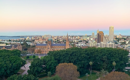 5星の当ホテルはハイドパークに面していて、その向こうにはセントメアリーズ教会がありシドニーの喧騒を忘れて優雅な趣に浸れますが、お買い物にグルメに大変便利な立地です。