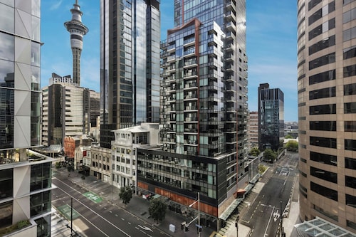 各国の貴賓や著名人も宿泊する都会的な高級ホテル。目抜き通りのクイーンストリートから1ブロック、ウォーターフロントへは2ブロック、ブリトマート駅へも徒歩5分という最高の立地です。ホテルに到着するとドアマンに出迎えられ、天井の高いスタイリッシュなロビーにまず感激。サービスはスマートで、オークランド有数の名ホテルとしての品格を感じさせます。全286のゲストルームはすべてバスタブ付き。エグゼクティブクラス以上の部屋はWi-Fiとニュージーランド国内通話が無料で、ロクシタンのアメニティ、ミネラルウォーターを毎日提供。ノンアレルギー枕の用意もあります。共有エリアで見逃せないのが10階のレクリエーションセンター。ここには大きな窓からオークランドの街並とワイテマタ湾が望める室内温水プール、ジャグジー、サウナ、フィットネスジムが揃い、心地よく体を動かし、リラックスするのに最高。早朝6AMから夜11PMまでオープンしているので、1日を爽快にスタートさせたり、夜景を眺めながら泳いだりとセレブな気分が味わえます。グルメスポットはモダンニュージーランド料理の「ナイツ・オン・アルバート」、鉄板焼きの「カブキ」、アルコールや軽食が用意