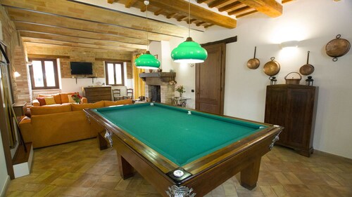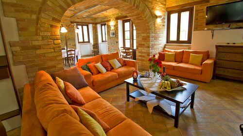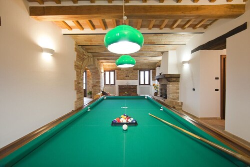 サンタンジェロ・イン・ポンターノに位置するこのヴィラは、ウルブス サルビア考古学公園、フィアストラ アッビー自然保護区、シビリーニサイクリングから 20 km 圏内です。ピアッツァ・アルタおよびサルナーノの滝も 20 km 圏内です。 ホットタブのほか、この禁煙のヴィラにはランドリー設備および庭園があります。 ヴィラには、プライベートプール、暖炉のほかに、6.5 室のバスルームと洗濯機も備わっています。キッチンには、冷蔵庫、オーブン、コンロ、電子レンジが備わっています。