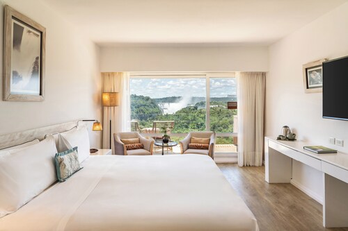 Strategically located inside Iguazu Park, the hotel features an outdoor pool and spa facilities. Some rooms have balconies with waterfall views. There is a restaurant, and a tennis court. Soberly decorated, rooms at of the venue feature large private balconies. Some of them overlook the waterfalls, and some others enjoy a jungle view. A buffet breakfast is served daily. International dishes can be enjoyed at in-house restaurant, overlooking the falls. Fine drinks can be ordered at the bar. Spa facilities include a hot tub, a hammam, and a sauna. Guests can request massage sessions, unwind on the sun loungers by the pool or hike through the lush garden surrounding the property. A fitness centre and a library are available. Free parking is available upon request. The establishment sits at 5 km from Puerto Iguazu airport. Shuttles can be arranged.