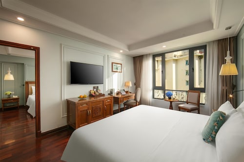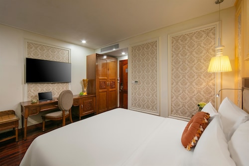 ハノイの中心で観光, 文化, ショッピングエリアのホアンキエム湖に位置するハノイ パール ホテル。滞在先として大変便利な場所にある4つ星ホテルです。2013年に改装され、多数の観光スポットに簡単にアクセス可能でどこに行くにも便利です。周辺には、カフェやレストラン、観光スポットであるハノイ大教会も近いので、おしゃれなカフェにもフラッと立ち寄れます。日本人のみならず、欧米の方にも大変人気です。また、ホアンキエム湖周辺では一番清潔なホテルと言われております。ホテルは、レストラン, ランドリーサービス, 液晶テレビ, ミニバーなどの設備が完備されてます。外の生活音を全く感じさせない程、外部の音が聞こえません。気になるお部屋は全17部屋、収容人数130人可能です。コロニアルテイストのデザインは、オペラハウスを思わせるかのようなデザインです。お部屋の種類は、スーペリア ルーム、デラックス ルーム、エグゼクティブ ルーム 、シティビュー、エグゼクティブ スイート シティビュー等豊富なお部屋が特徴です。7,8階はスイートルーム。バルコニー付きで遠くにはハノイ市のシンボル、ホアンキエム湖を望むことができます。お部屋の種類の