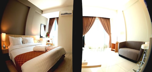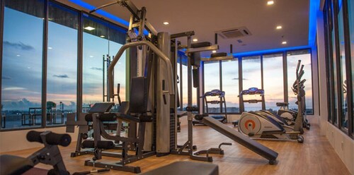 フィットネスルームとプールがあり、特に屋上のプールからの眺めが最高!空に浮かぶスカイラウンジから美しい夕焼け、コタキナバルの街並、飛行機の飛び立っていく姿も見られます。子供用の浅いプールもあるので安心して遊ばせることができますよ。