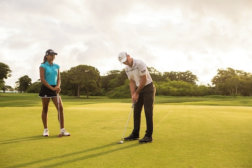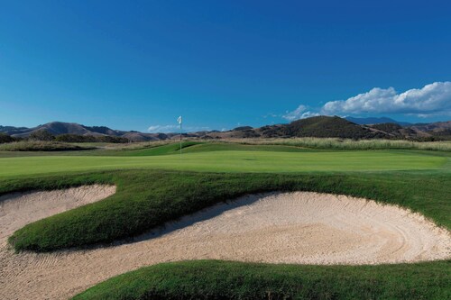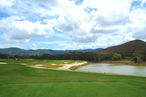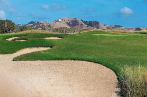 対する丘には18ホールのゴルフ場がなだらかに広がる。