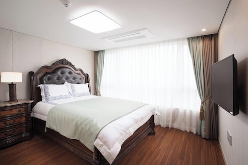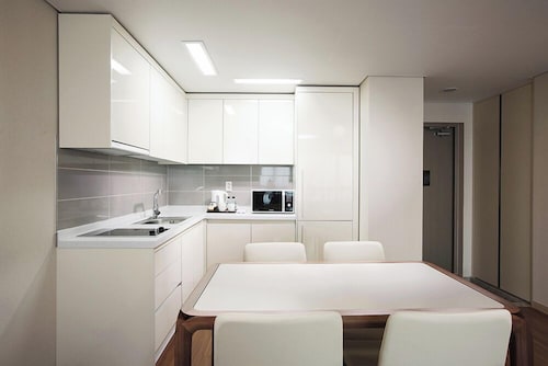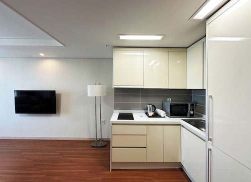 地下鉄1号線中央駅14番出口から徒歩約3分。釜山駅、旅客ターミナルから車で約3分。金海空港から車で約30分。