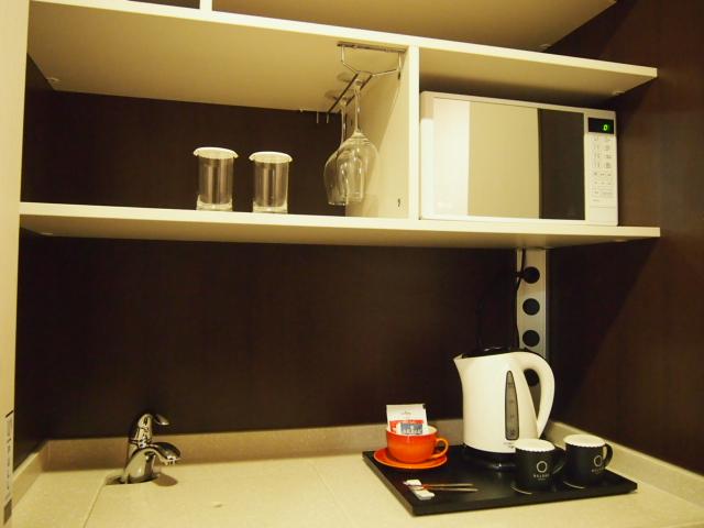 キッチンもあって、机のスペースも十分。長期滞在でも快適に過ごせそうです。