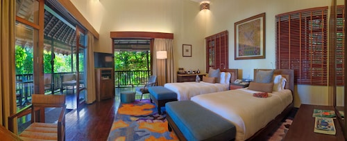 どの客室も独立した別荘風の造りになっており、ルームタイプによっては2ベッドルーム、3ベッドルームなど大人数で泊まれるお部屋も。またお部屋の外に専用のジャグジーバスが付いているお部屋もあります。