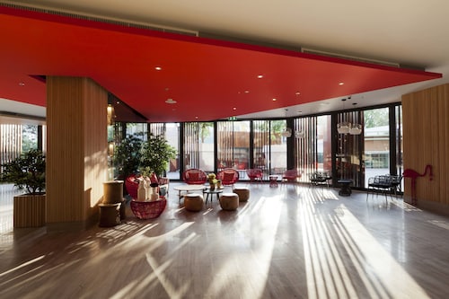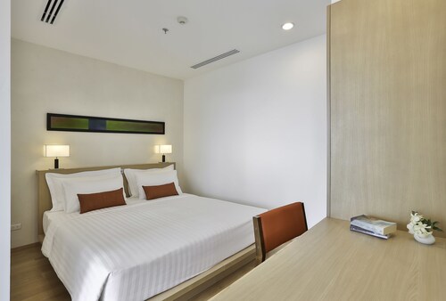 外国人観光客にはナイトバザール、タイ人観光客にはニマンヘミン、そしてお洒落な旧市街。チェンマイのホテルは大きく分けてこの3ヵ所に集中しています。こちらEastin Tan Hotel Chiang Maiはニマンヘミン地区にできた新しいホテル。目の前にはオープンしたばかりの新しいショッピングモール「MAYA Lifestyle Shopping Center」、通りを南に行けばお洒落なカフェやレストラン。屋台だって銀行だってスーパーだってあります。何でも揃うニマンヘミン。短期でも長期でも滞在するにはもってこいな立地。主にタイ人がメインなので、ナイトバザールのような雰囲気はありません。まだオープンして1年ほどしか経っていないので、お部屋もぴかぴか清潔。ただ、最もスタンダードな「スーペリアルーム」は32㎡の広さなので、2人でぴったりのサイズ。子供がいるとかなり狭くなると思います。ホテル自体が新しくお部屋の造りも今風ですっきりしています。白と茶色を貴重とした暖かな内容は落ち着きがあって◎。ホテルのHPによると1泊1室1,999THBなので、サービス面や朝食はそこそこです。ロビーは赤を貴重とし、あまり広くはありま