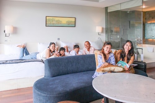 【Wi-Fi全館無料】【全室禁煙】 自慢のスイートルームが過半数を占め、専用ビーチクラブを備えたジンバランビーチにも気軽にアクセス可能な人気エリアのホテル。ングラ・ライ国際空港から車で約10分。ホテルからクタビーチまでは車で約15分です。 ホテルには屋外プール、屋上プール、フィットネスセンター、キッズクラブがあり、バリ式エステトリートメントではリラックスした時間をお過ごしいただけます。レストランでは日本食をはじめ世界各国料理を提供。客室はモダンで心地の良い空間となっています。 ※ニュピ(2026/3/19)はチェックイン及びチェックアウトができません。