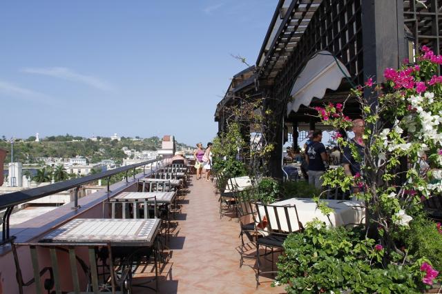 ヘミングウェイが使用していた511号室は今も当時のままの調度品が置かれ、文豪の私物も残されている。宿泊客は無料で、ビジターは有料で中に入ってみることが可能。思いのほかこぢんまりとしているが、窓からは旧市街を見下ろすことができ快適そう。ここまでは味のある古いエレベータで昇っていくが、人数制限もあり、列に並んで待たなくてはならない。宿泊客はオペレータにカギを見せれば優先で乗せてもらえる。屋上にはレストランもあり、夕陽を眺めつつロマンチックなひとときを過ごすのもいいだろう。