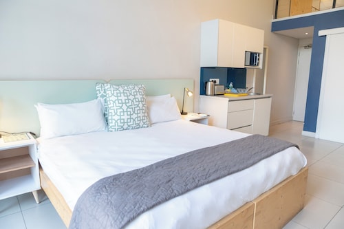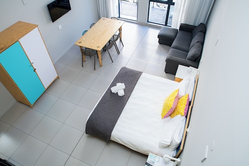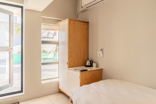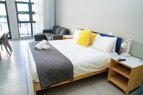 ケープタウン市内の中心から5キロほどの場所にあり、太平洋に面した雄大な景観が臨めるビーチ・リゾート地区「Sea Point(シー・ポイント」」にあるホテルです。バス(MiCiti buss)や車で中心地へは約10分、ショッピングに便利なSea Promnade(ショッピング・モール)まで、100メートルなのでショッピングも簡単です。部屋のタイプは10種類で、エグゼクティブ・スイート、スタジオ、そして6人までが宿泊できるドミトリーまであり、海や草原をイメージした明るい色調のインテリアがとても魅力的。ゆっくりくつろぎたい方は、予約をする際に「スペースが広めの部屋を希望します」と伝えると、ふさわしい部屋を選んでくれるでしょう、アメニティとして、各部屋には無料WiFiが完備されており、簡易キッチン、そしてバス・ルームでは、ホテルのオリジナル・シャンプーやソープが利用できます。市内観光はもちろん、サイクリングやジョギング、そしてジープで自然の中へ遠征したり、帆船でクルーズするなど、屋外アクテビティを楽しみたい方は、ホテルのフロントで観光ツアーを予約できます。また、友人同士で宿泊し、ホテル内でパーティを開催することも