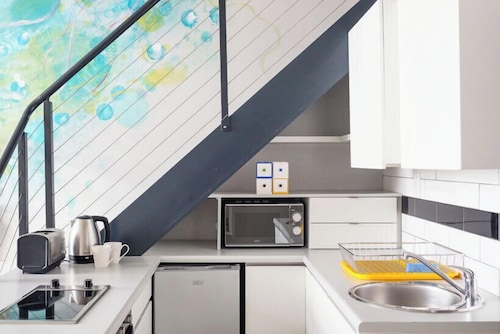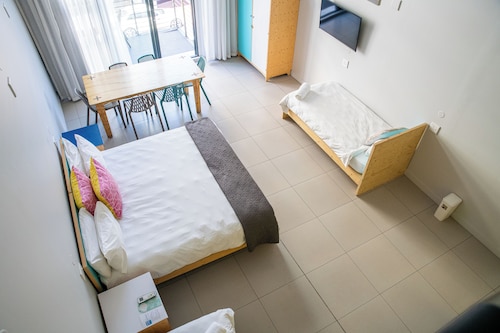 部屋のタイプは10種類で、エグゼクティブ・スイート、スタジオ、そして6人までが宿泊できるドミトリーまであり、海や草原をイメージした明るい色調のインテリアがとても魅力的。ゆっくりくつろぎたい方は、予約をする際に「スペースが広めの部屋を希望します」と伝えると、ふさわしい部屋を選んでくれるでしょう、アメニティとして、各部屋には無料WiFiが完備されており、簡易キッチン、そしてバス・ルームでは、ホテルのオリジナル・シャンプーやソープが利用できます。